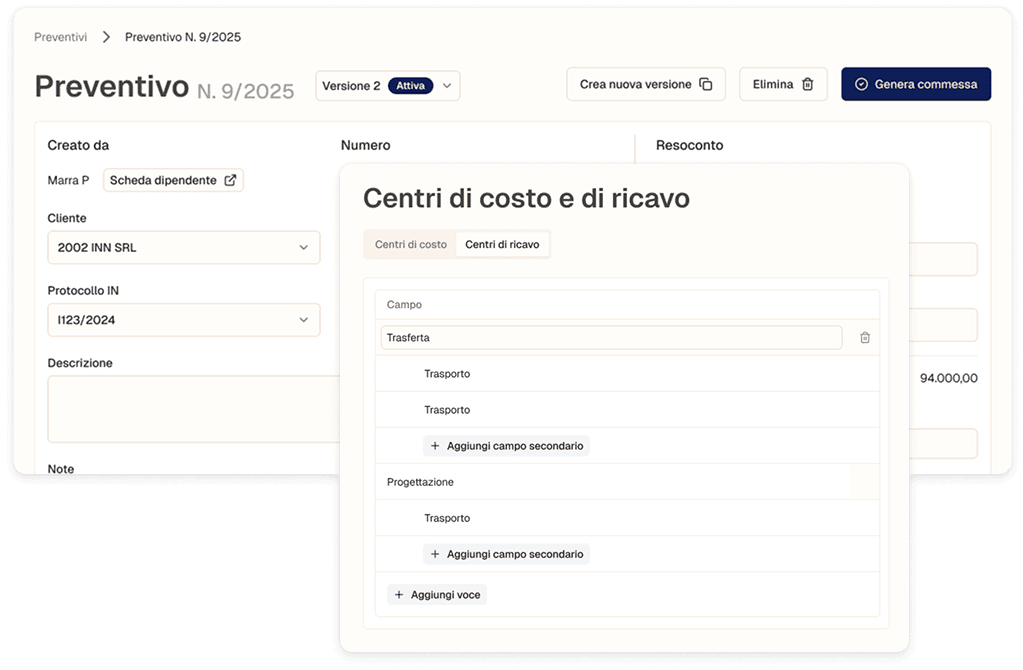 Gestione acquisti, risorse e controllo economico-finanziario in un unico flusso. Zero fogli sparsi, KPI in tempo reale, integrazione con ERP/contabilità.